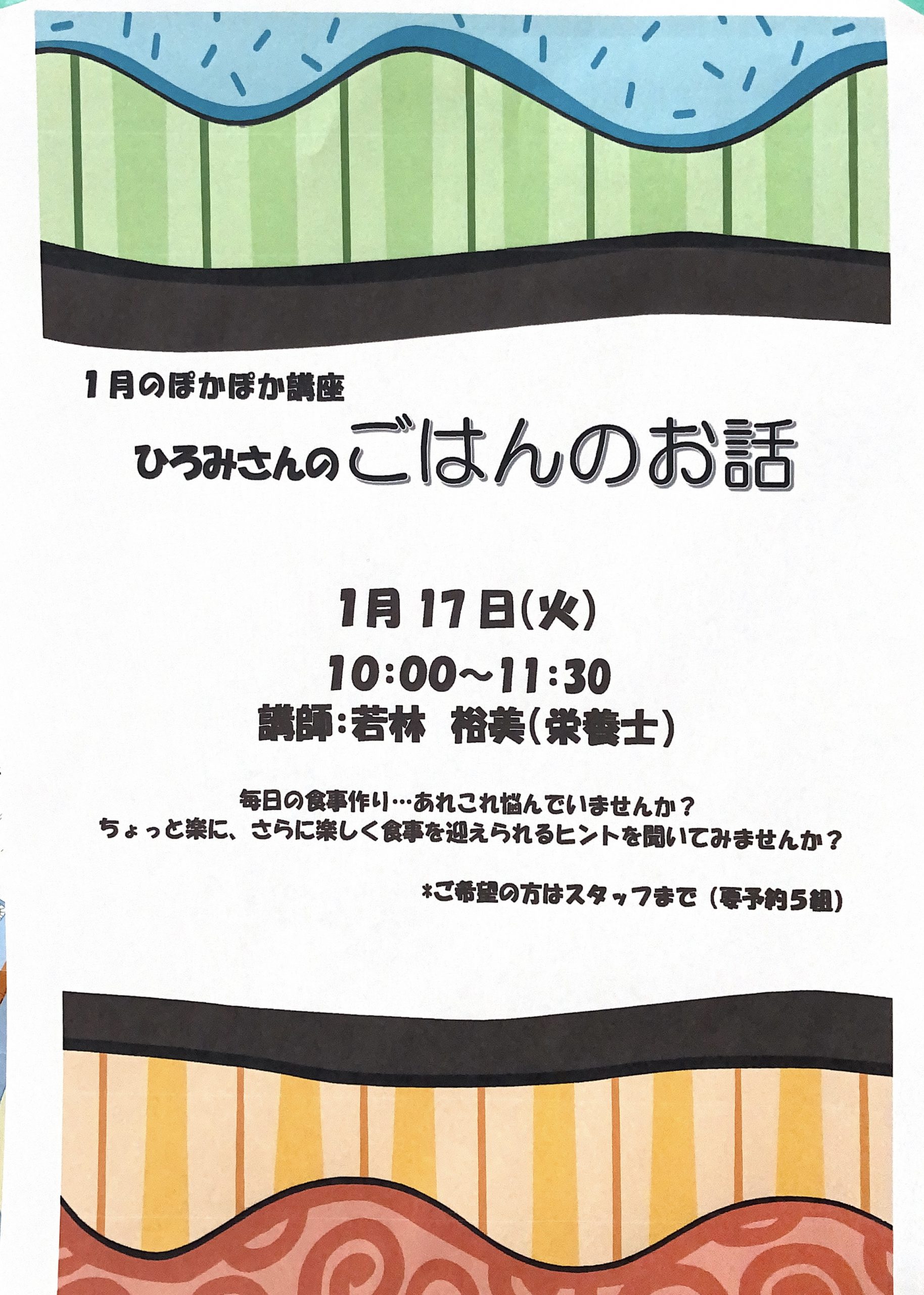 2023年1月17日 ひろみさんのごはんのお話。 こどもも、おとなもちょっとした ごはんのコツをひろみさんと ゆるりとお話しませんか? 11月のぽかぽか講座は 満員になりましたm(_ _)m
