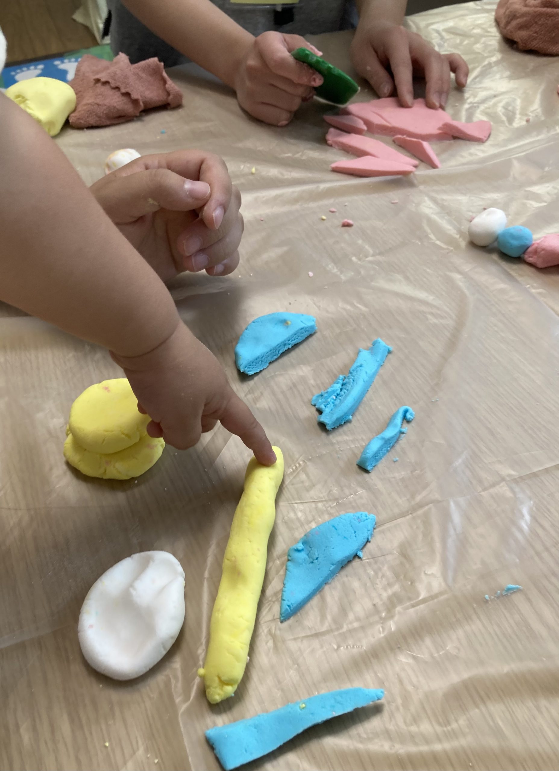 こんにちはmimiです。7月は南部療育センターさんが来て下さいました。 感覚遊びの米粉ねんど遊びをしましたよ。さらさらの粉の状態から食紅で色をつけて少しずつ水を入れながら、だんだんと柔らかいねんどになっていくまで見て、触 …