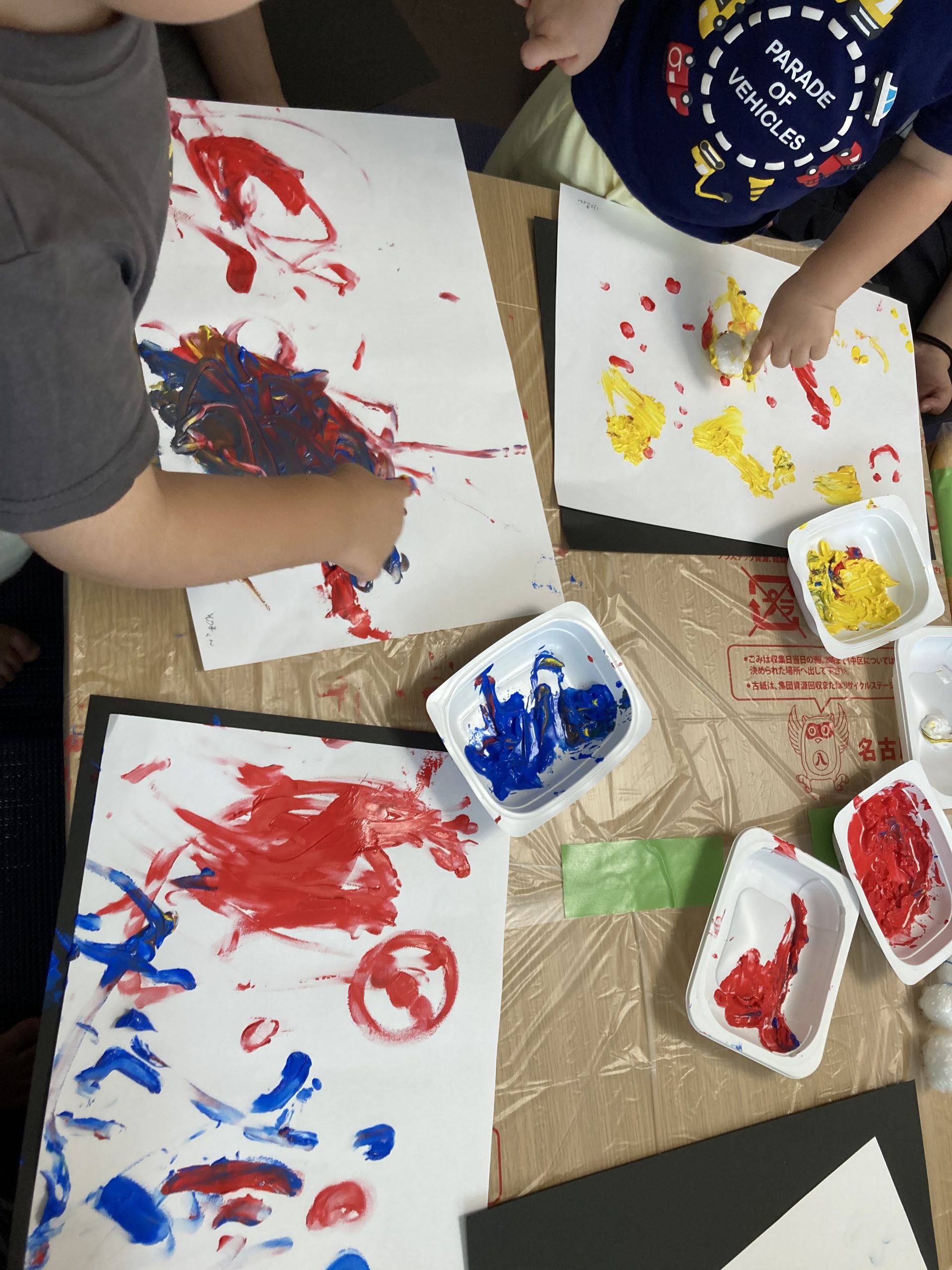 10月は南部地域療育センターそよかぜさんが来てくれて、グループ体験のえのぐあそびをしましたよ。 指やスタンプを使ったり、色をまぜたり視覚と触覚を使って楽しみながら素敵な芸術作品が出来上がりましたよ。 11月 …
