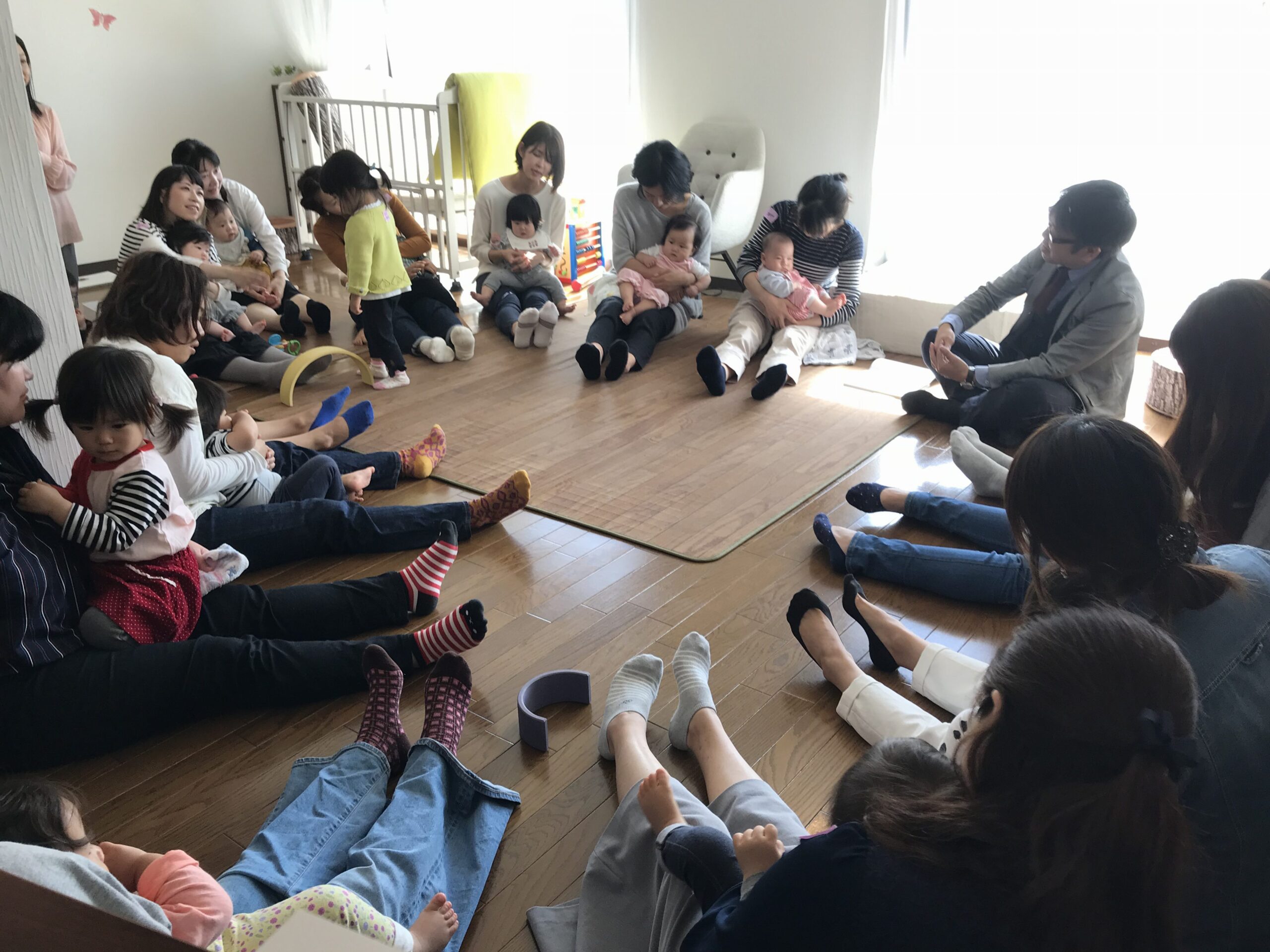 こんにちは! 先日、山下直樹 先生のわらべうた講座と育児相談 が行われました。 足を伸ばし、膝に乗せて うたが始まります♪ きゃっきゃっと楽しむ子ども達! 子ども達は揺れる動きは大好きですね! よく わらべうたには揺れ …