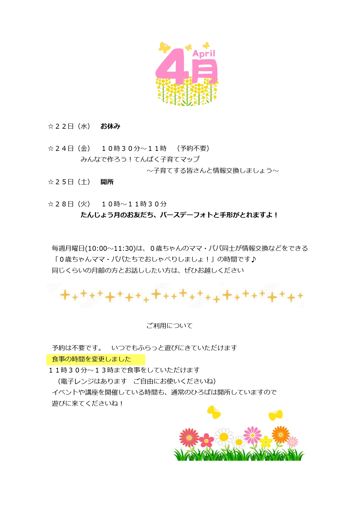 こんにちは! やっと春の陽気になってきましたね~ 桜の木々も一気に花を開き始めました♪ お散歩日和みなさん楽しんでますか ひろばも笑い声、泣き声、賑やかな声でいっぱい! 春休みに入り大きくなっ …