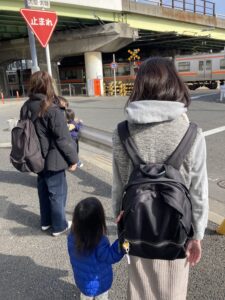mimi のお友達も親子で手を繋いでお散歩に出かけました。踏切で電車を見たり、少し坂になっているところやデコボコ道を歩き、公園に寄ってお砂場遊びも楽しみました。音を聞いて、見て、足の感覚や手の感覚をいっぱい使うので、散歩や公園遊びは良い刺激がいっぱいです!