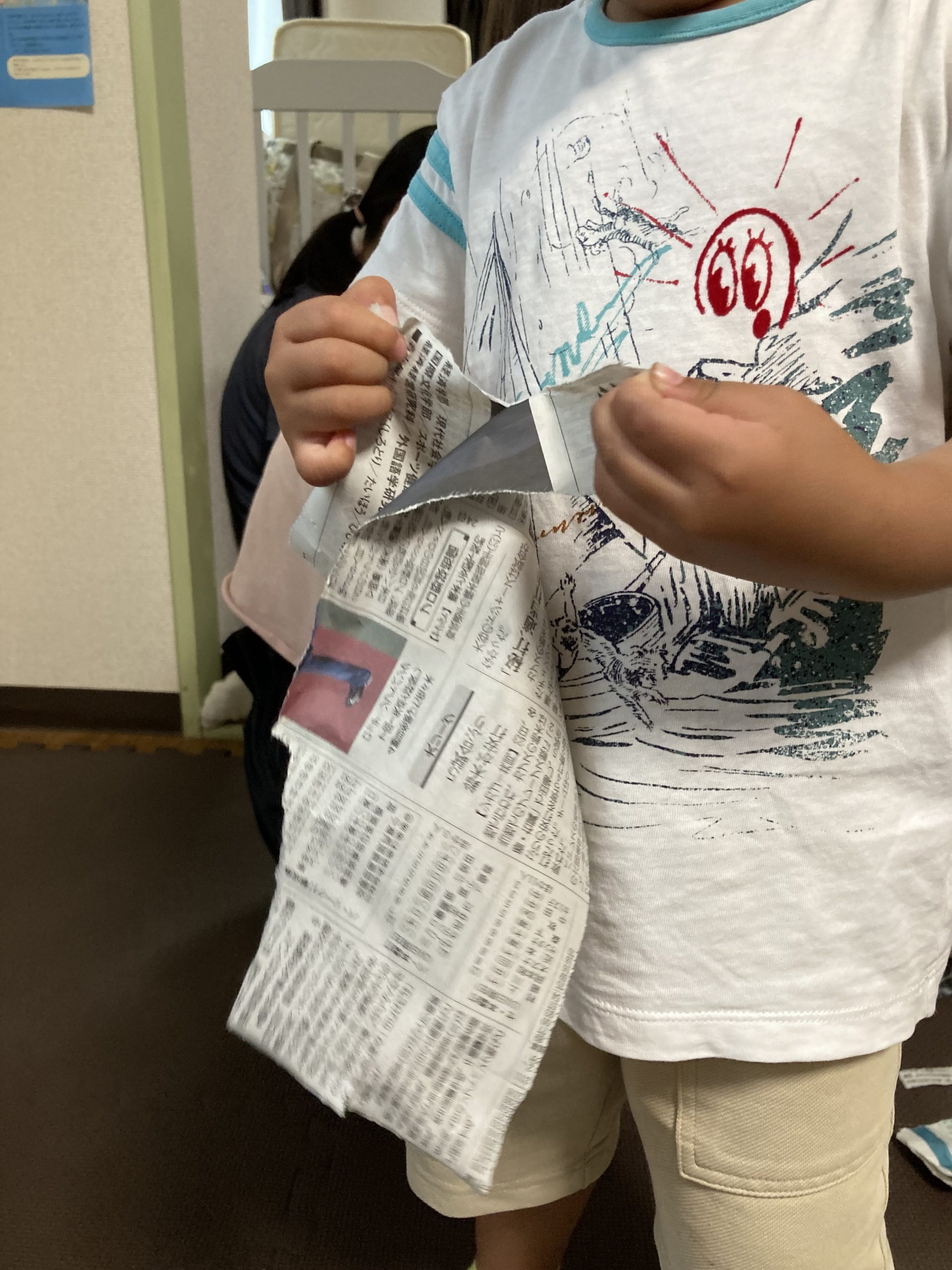 こんにちは。mimiです。日差しが強くなってきましたね。プールが欲しい日も多くなってきましたね。 南部地域療育センター「そよ風」の先生が遊びに来てくれましたよ。グループ療育の体験、今回は「新聞紙遊び」をしていただけました …