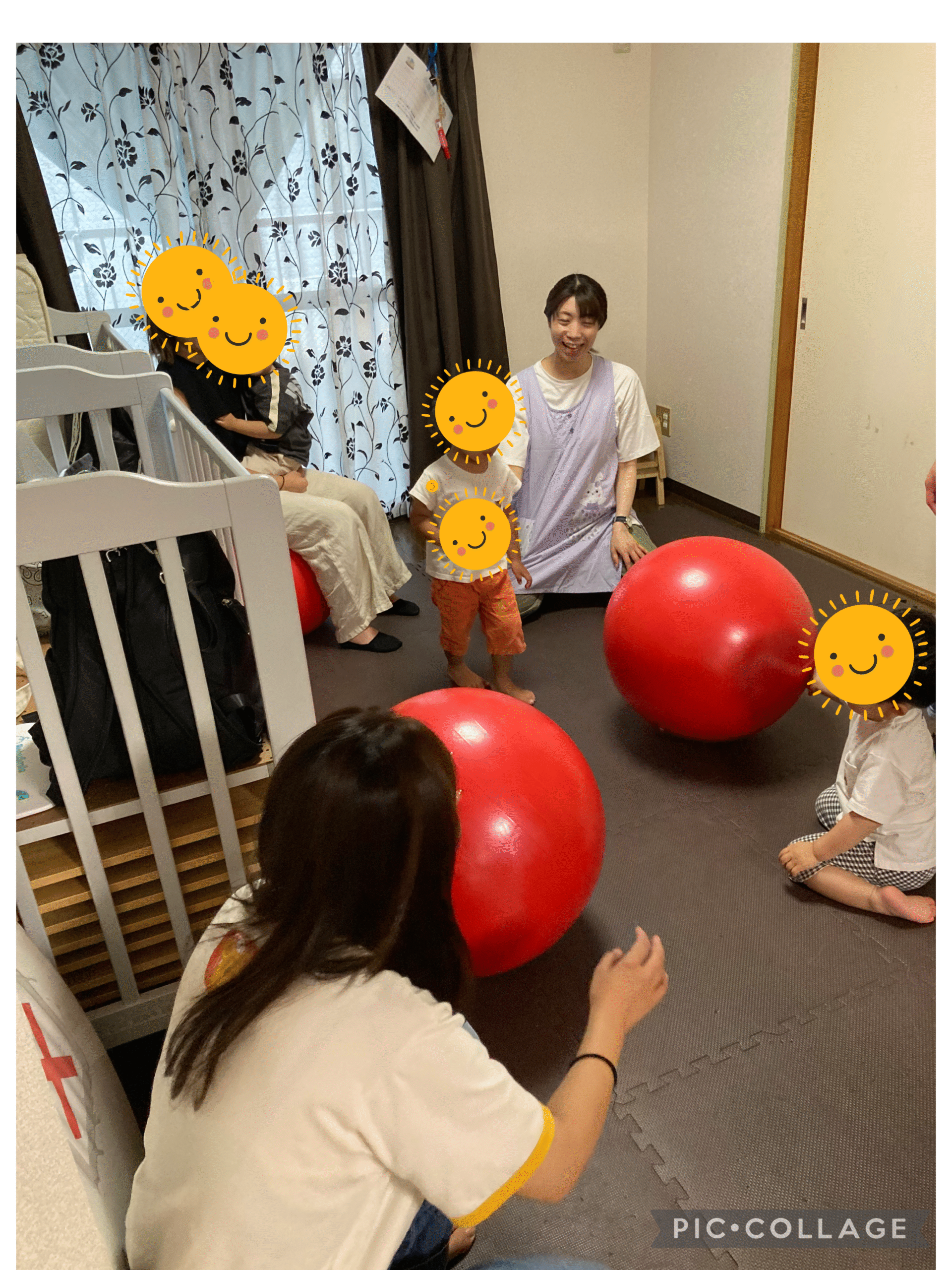 こんにちは。mimiです。 夏休み真っ盛り!mimiのお友だちからも、お出かけのお話や里帰りの楽しいお話を聞かせてもらい、私たちも一緒に楽しくなってい ます。 さて、今月はバランスボールの先生がきて、全身を …