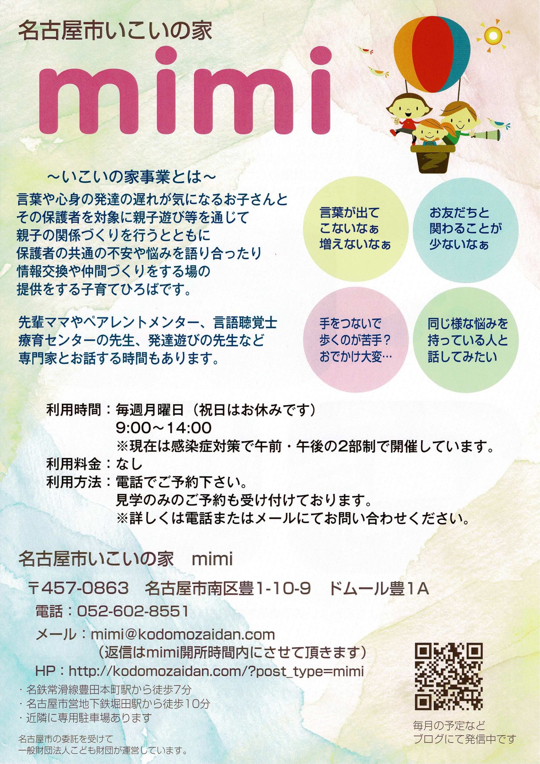 こんにちは!はじめましていこいの家mimiです。 4月より運営母体が変わりました。 引き続き子どもたちの成長を共に見つめていきたいと思っています。 よろしくお願いします。 毎月、発達に関する専門の先生や発達遊びの先生、 …