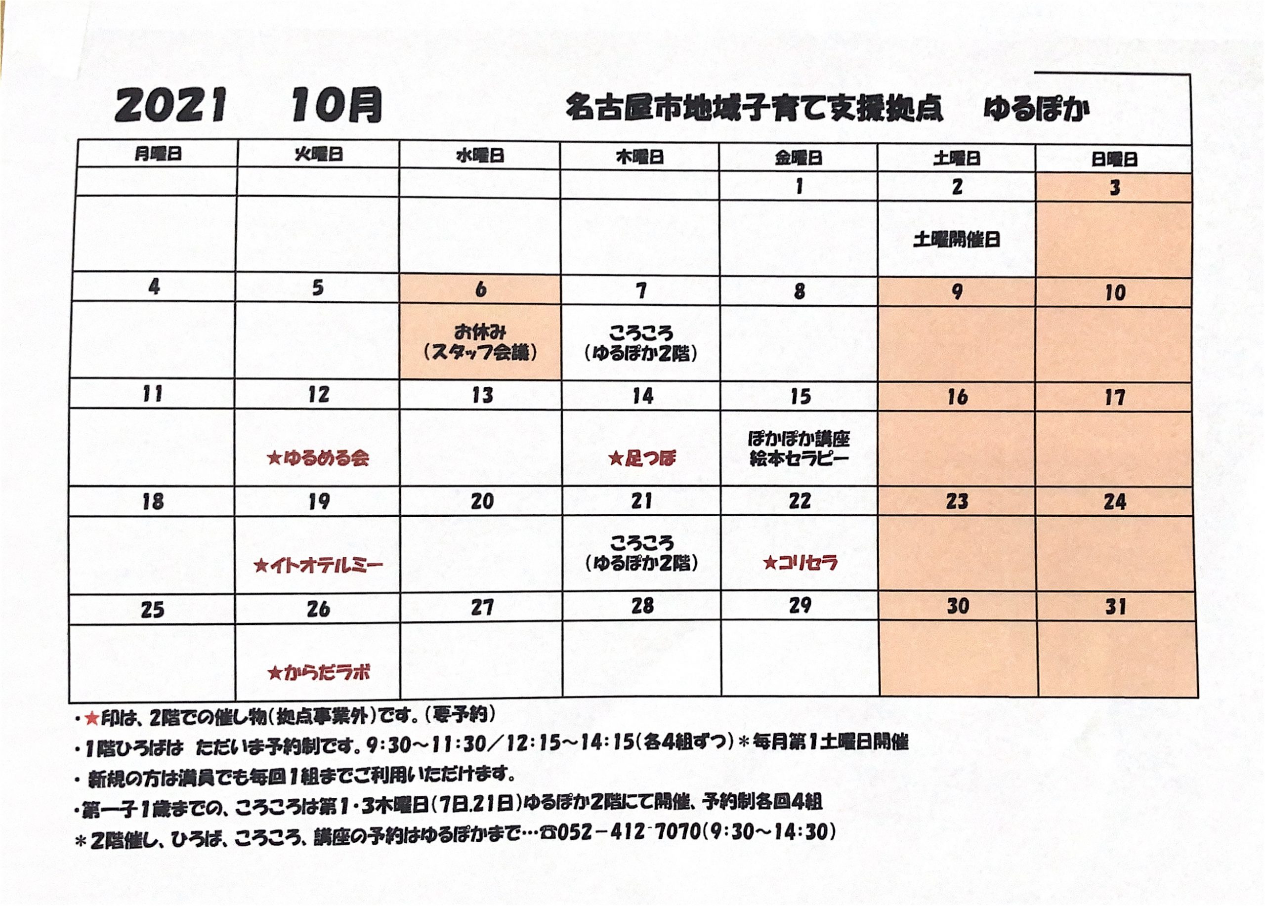 ☆1階 ひろばの予定 9:30〜11:30 12:15〜14:15 各4組予約制 新規さんは当日でも1組までご利用頂けます。 6(土) 土曜日開催日 10(水) お休み (スタッフ会議のため) 24(水) ぽかぽか講座 …